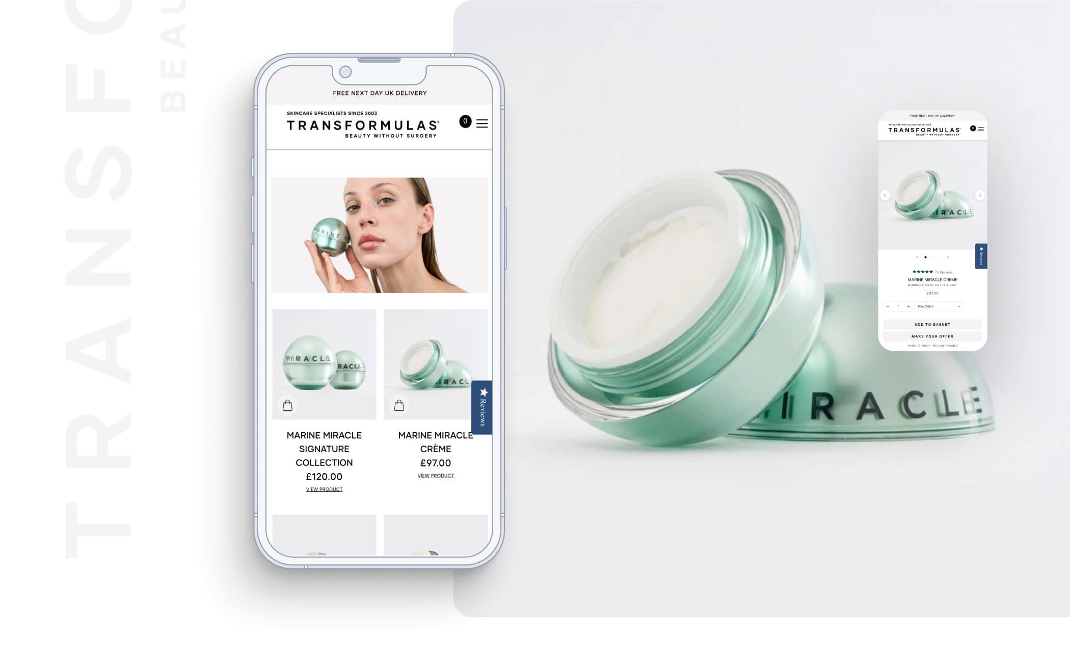 Transformulas, a leading beauty brand, approached us for a full Shopify service solution. In 2023, we took over their pre-built website and customised it to enhance both the design and user experience. This included theme customisation, CSS improvements, and Liquid code modifications to make the site more visually appealing and user-friendly.
